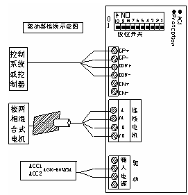 电压:AC(40V-60V/3A)或/小于DC80V/3A; 电流:Imax:5A; 单/双脉冲可选; 细分:2,5,10,20,40,4,8,16,32,3,6,12